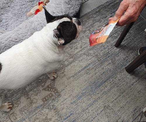Naš miniaturni bulterijer Paul jih vedno dobi kot nagrado. Zelo mu teknejo. Dlaka mu je lepo gladka in močna.