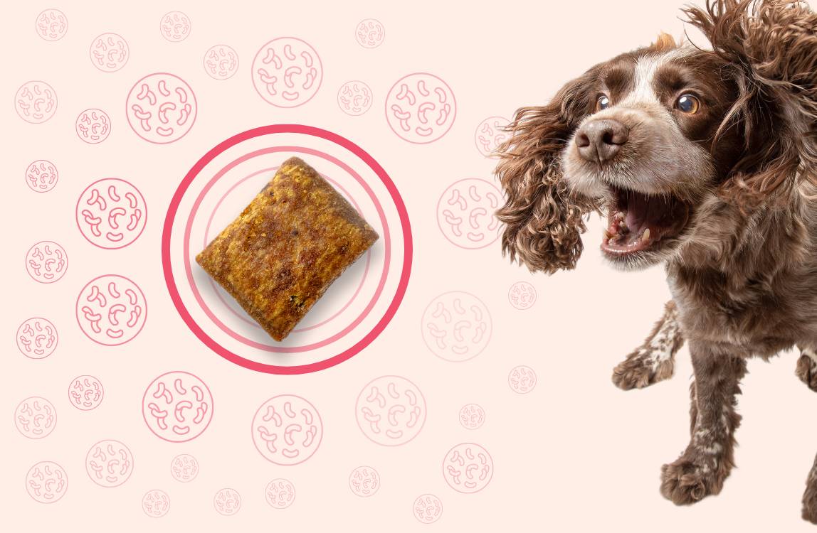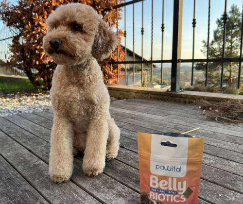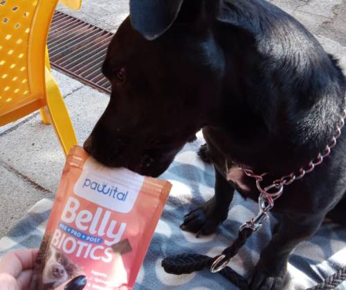 "Rio se je drsal po riti in imel pogosto mehko blato, Oli pa si lizal tačke in jedel travo. Živi probiotiki, dodani pa še prebiotiki in postbiotiki v okusnih priboljških, ki jih imajo psi radi, zmanjšajo ali pa celo odstranijo težave povezane s prebavo."