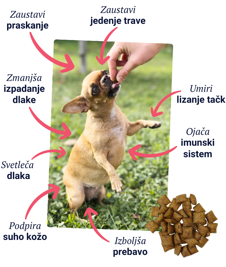 To je resnično popoln prigrizek za živali, ki trpijo zaradi težav, kot so srbenje, praskanje, lizanje tačk, vnetje kože ali celo težave s prebavo."