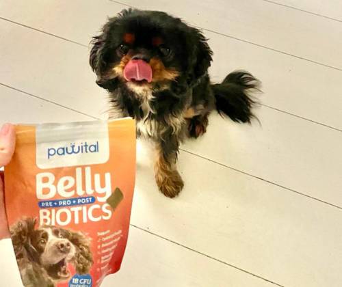 Belly Biotics je priročno majhen priboljšek, ki ga lahko dajete svojemu psu večkrat dnevno kot nagrado.