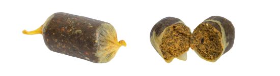 Klobasica je zavita v naraven govej ovoj, ki je užiten in 100% varen za uporabo. Klobasic torej ni potrebno odvijati, pes jih lahko poje.