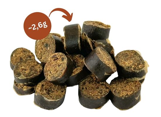 Okrepite zdravje dlake in kože vašega psa s to povsem naravno poslastico na osnovi govedine, polno biotina, hialuronske kisline, postbiotikov, kurkume in drugih močnih naravnih sestavin.